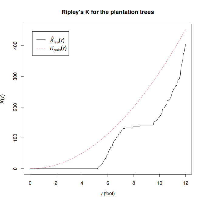 K <- spatstat.explore::Kest(X, rmax = 12, correction = "isotropic")
