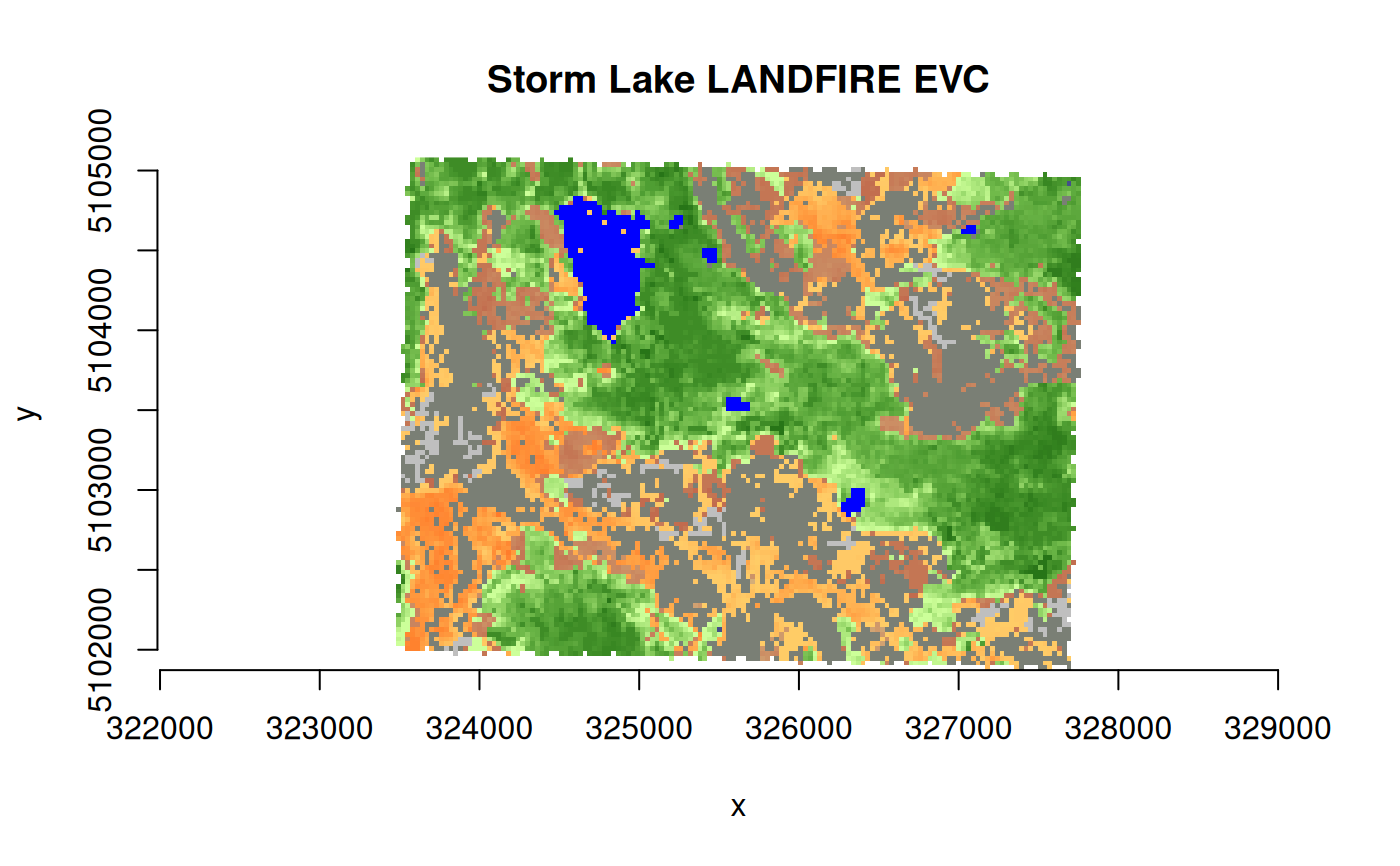 ## LANDFIRE Existing Vegetation Cover (EVC) with color map